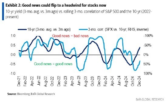 自8月出现抛售以来,美股一直携债券收益率上涨,但随着10年期收益率升破4.5%,美国银行认为“市场正转向‘好消息就是坏消息’的模式”。